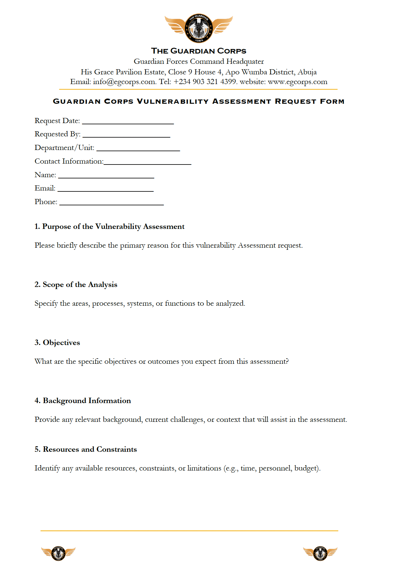 At The Guardian Corps, our Vulnerability Assessment is designed to evaluate your current security framework—highlighting vulnerabilities, inefficiencies, or blind spots within your operations. This assessment provides the insight needed to strengthen your defenses, improve response protocols, and align your security posture with your organizational goals.By submitting this request, you’re taking the first step toward a more secure, resilient, and well-structured environment.